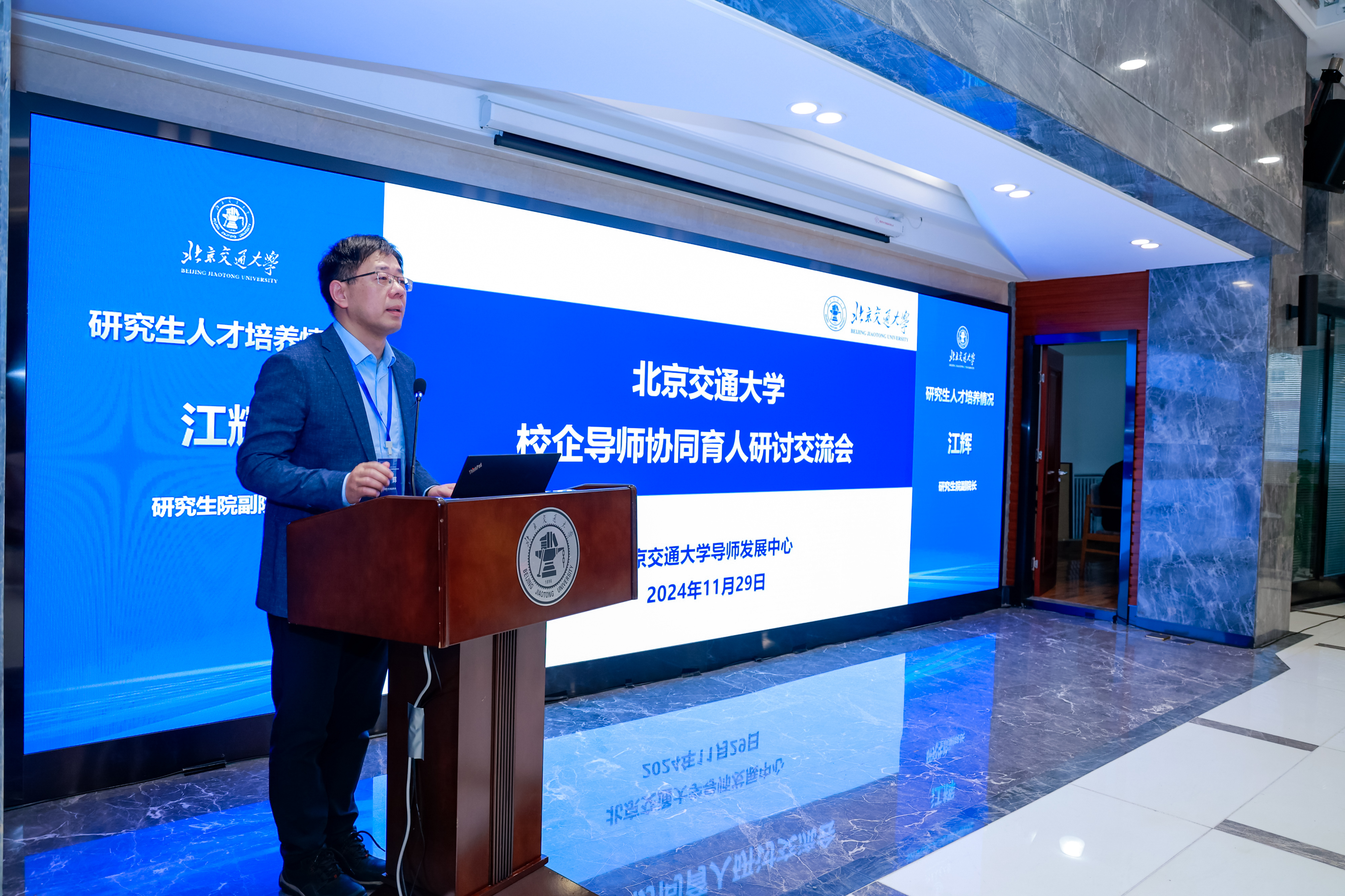 研究生院副院长江辉介绍研究生人才培养情况。介绍了学校研究生培养基本情况和校企联合培养整体开展情况,从学校、企业、企业导师等多个维度对深化校企协同育人交流了建议和思考,并介绍了研究生导师发展中心的成立背景及后续即将开展工作的规划。