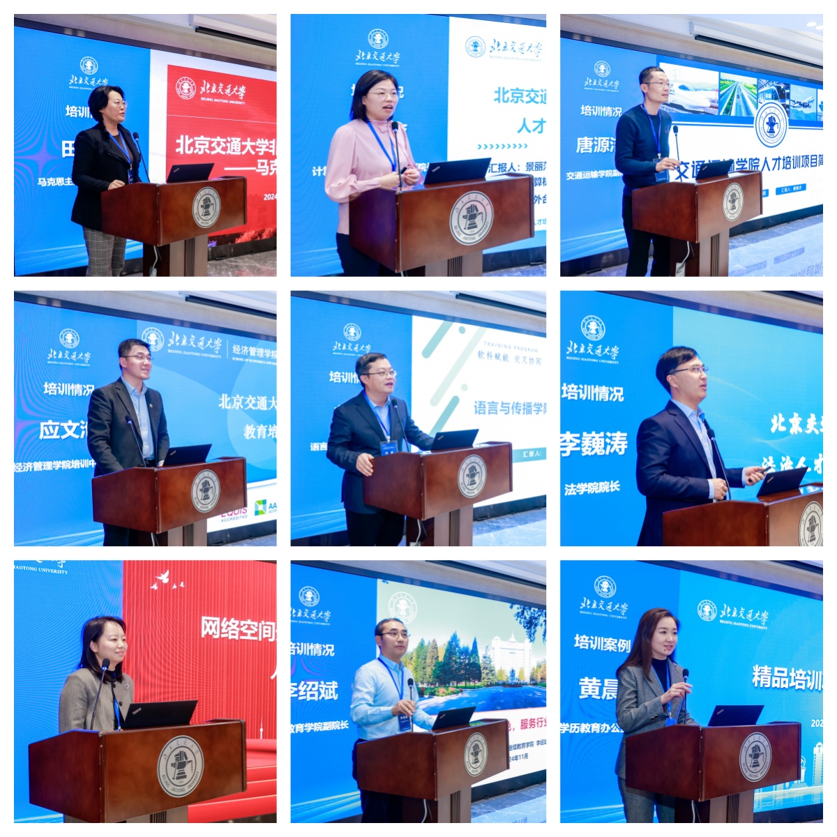 马克思主义学院党委副院长田永静、计算机科学与技术学院副院长景丽萍、经济管理学院培训中心主任应文池、交通运输学院副院长唐源洁、语言与传播学院副院长刘凯、法学院院长李巍涛、网络空间安全学院(国家保密学院)副院长李静、继续教育学院副院长李绍斌分别对本学院基本情况进行了介绍,对外联络处非学历教育管理办公室主任黄晨做培训案例介绍。此部分内容由外联处副处长郭祎华主持。