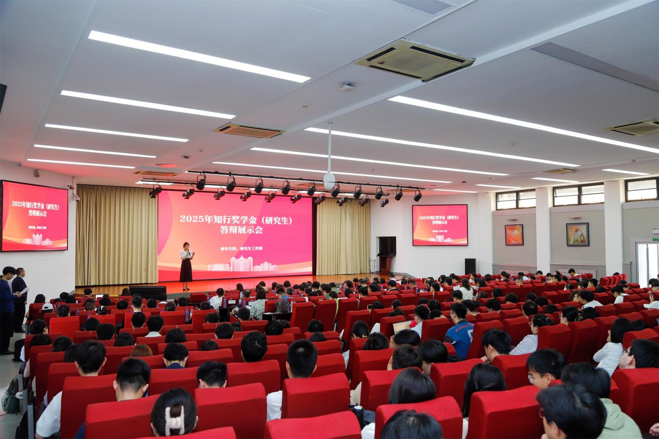 5月27日下午,我校2025年“知行奖学金(研究生)”答辩展示会在中心报告厅举行。宣传部、学生处、团委、保卫处、本科生院、科研院、人文社科处、研究生院、研工部、发展规划处、国际处、就创中心、外联处、网信办、威海校区、国教学院、体育部、后勤集团、詹天佑学院、卓工学院等部门负责同志,各学院领导、导师、学生代表等70余人担任评委,各学院研究生辅导员、研究生代表到会观摩。